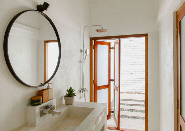 2 of our rooms have private courtyards and outdoor rain showers while the 3rd room has double doors leading out to the Garden.